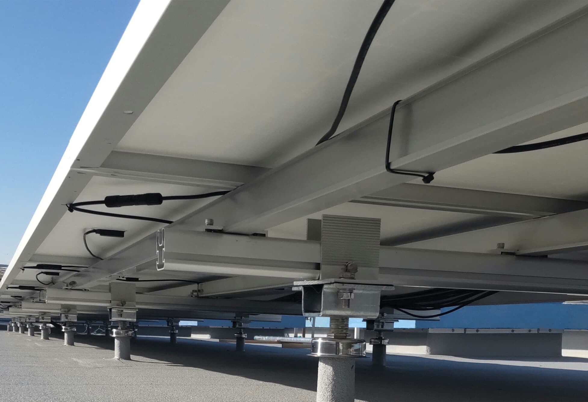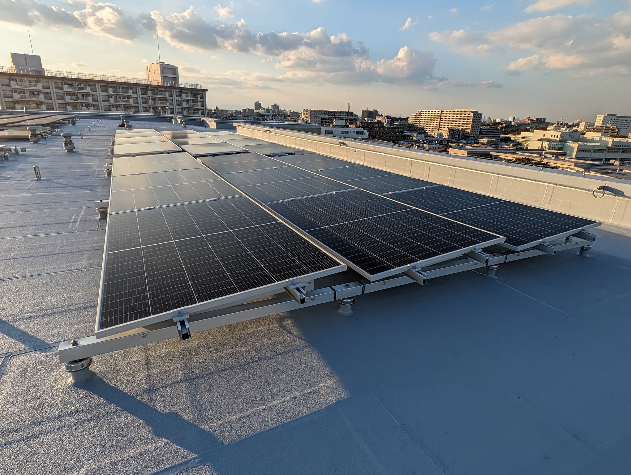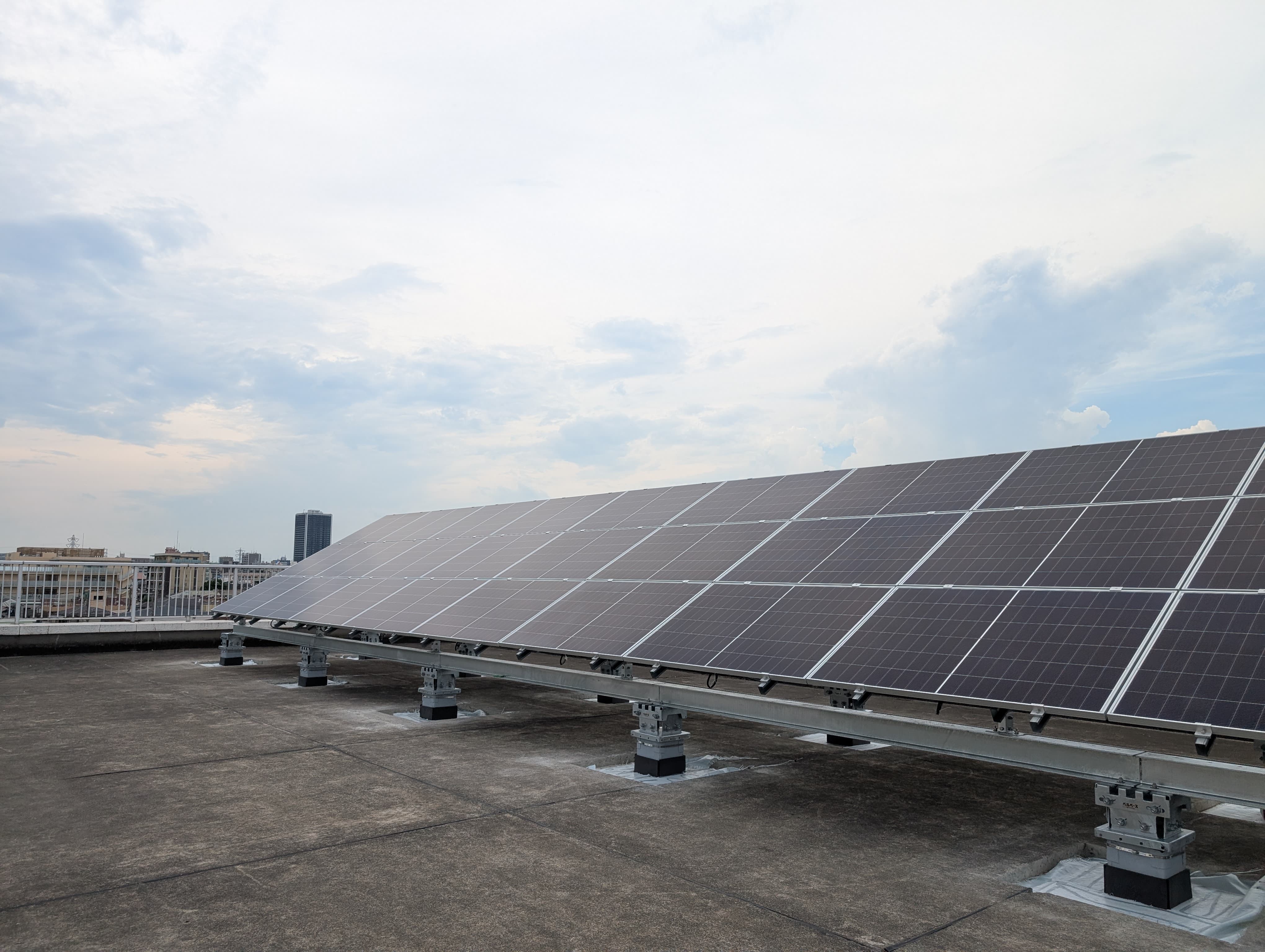 パラペットの高さに余裕があり、パネル下に空間をもたせることで作業導線を確保した設計